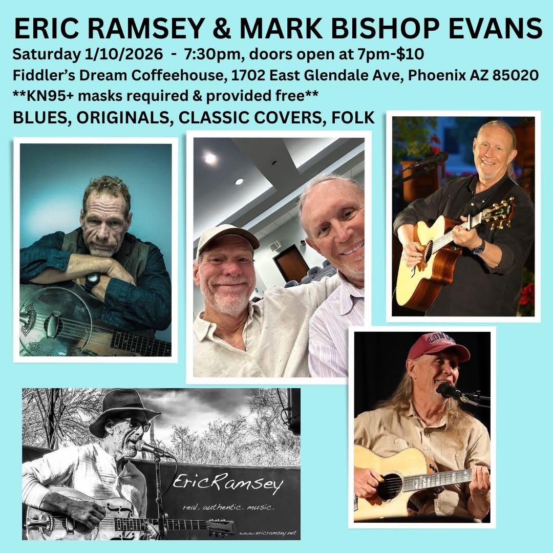 Eric Ramsey and Mark Bishop Evans will be sharing the evening with originals, classic covers, Blues, folk, and who knows what else these two fine musicians have in store!