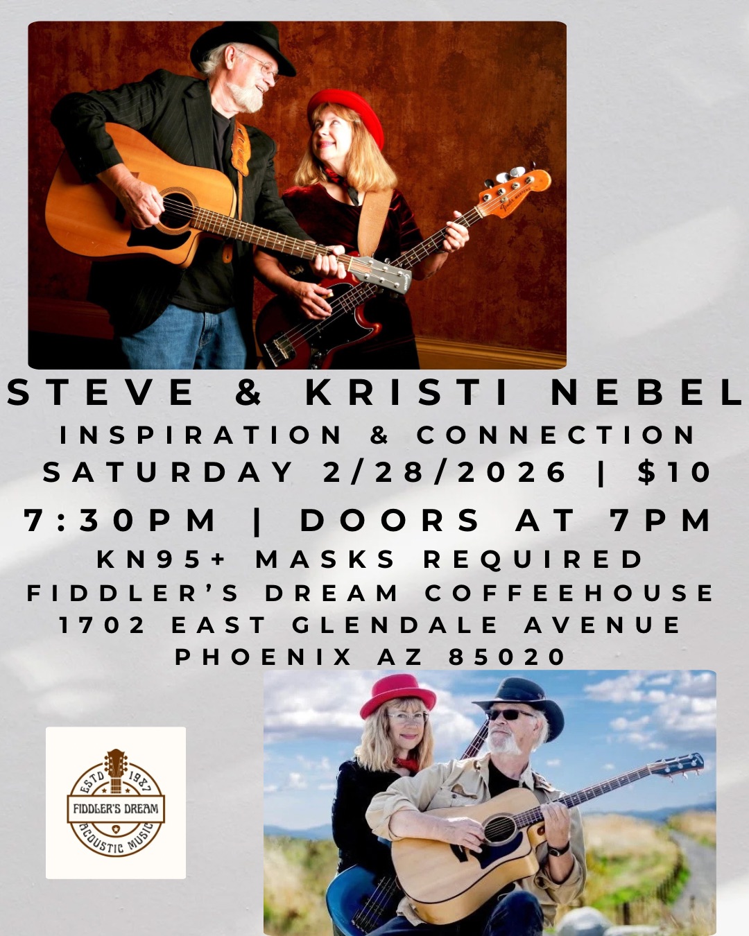 Steve and Kristi bring passion, finesse, and beauty to their audiences with their songs of social justice, knife edge observations, stories they have picked up in their travels, and pure, simple love. They have been weaving their musical magic into the fabric of the singer-songwriter scene since 1978. With every strum of the guitar and heartfelt lyric, they paint vivid stories that resonate deeply with audiences. Their timeless sound, enriched by decades of experience, invites listeners on a journey through love, loss, and the beauty of life. In a world that constantly changes, their music remains a constant source of inspiration and connection.